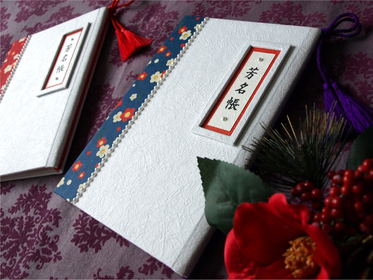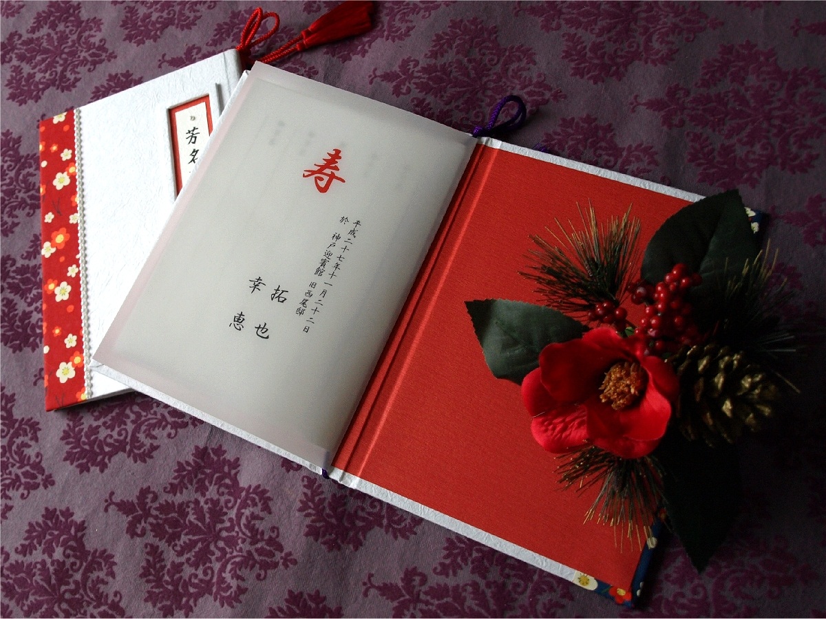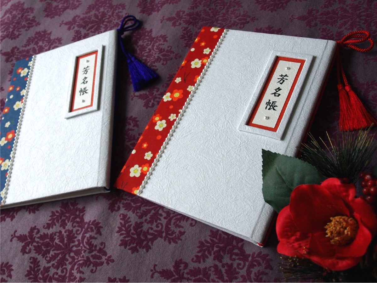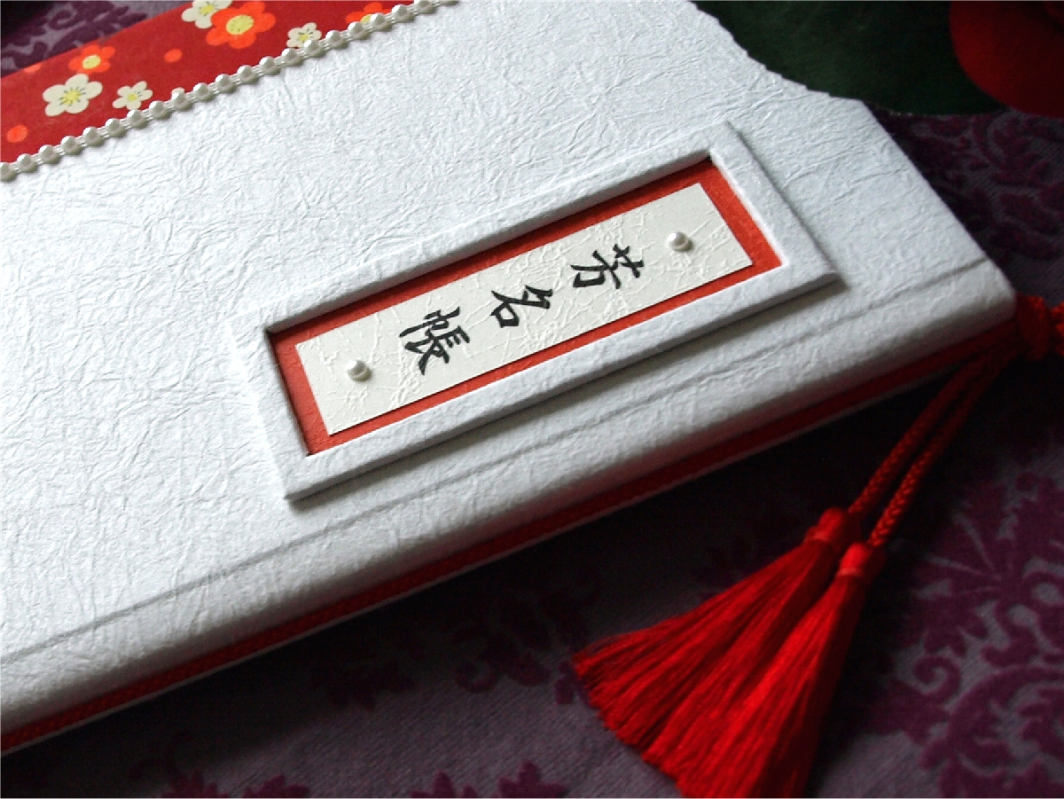 芳名帳(白もみ紙+赤青梅)
