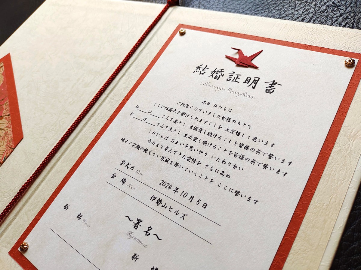・結婚証明書冊子(B5大 -閉じた状態-)