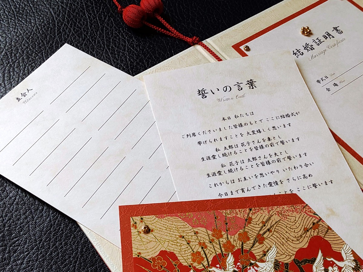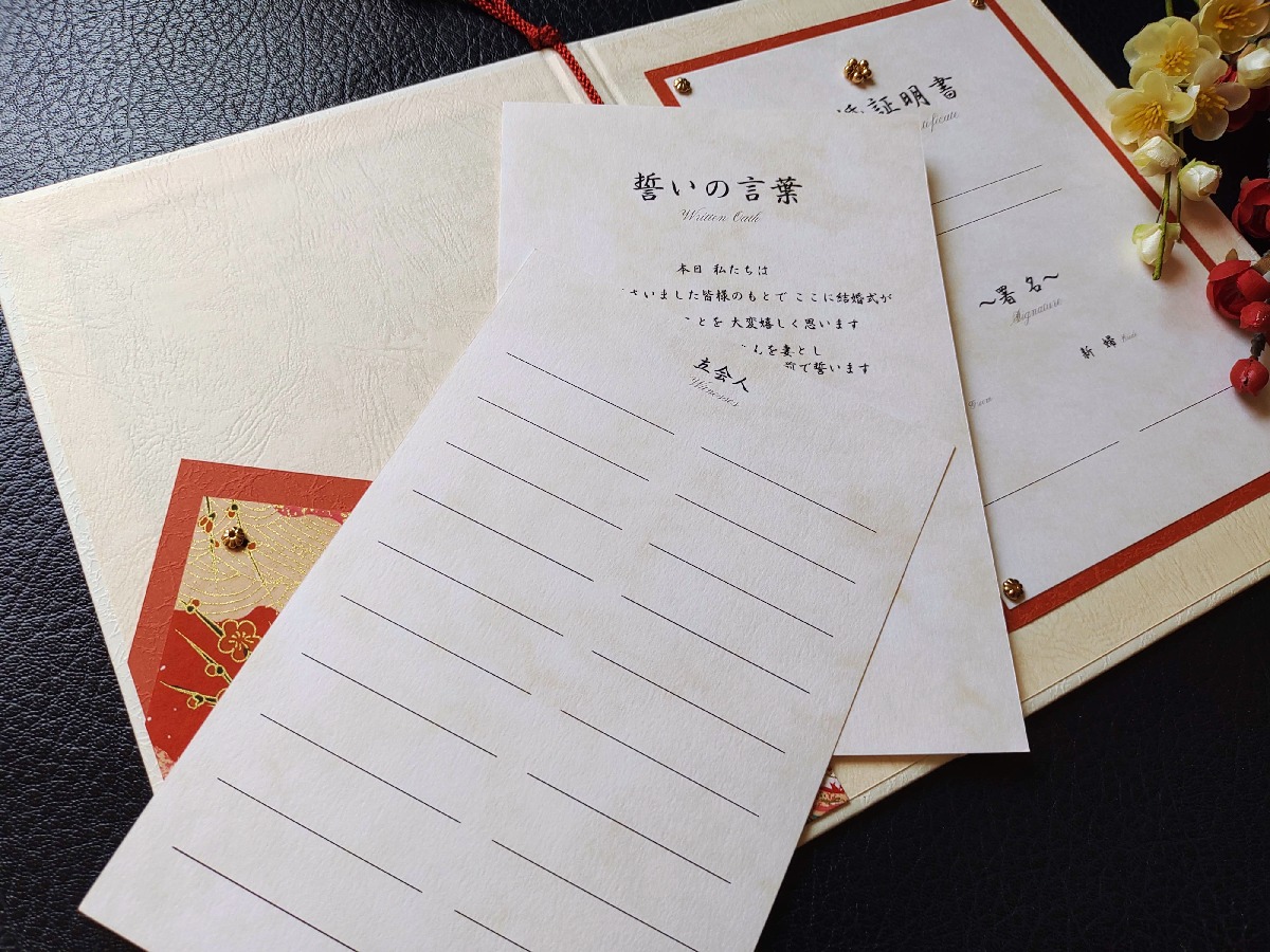 私 太郎は 花子さんを妻とし 生涯愛し続けることを皆様の前で誓います