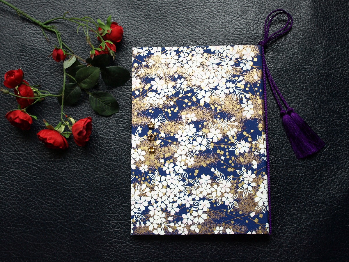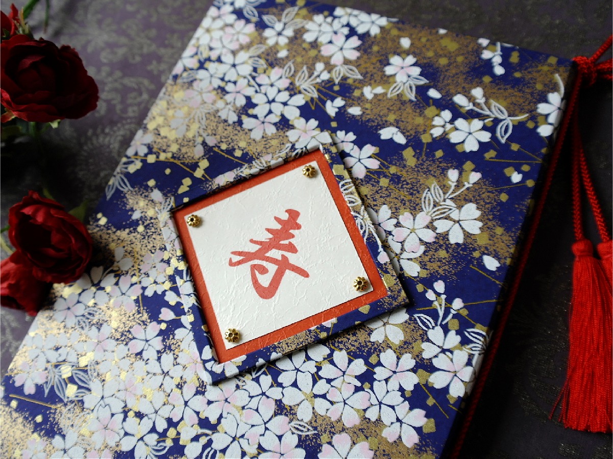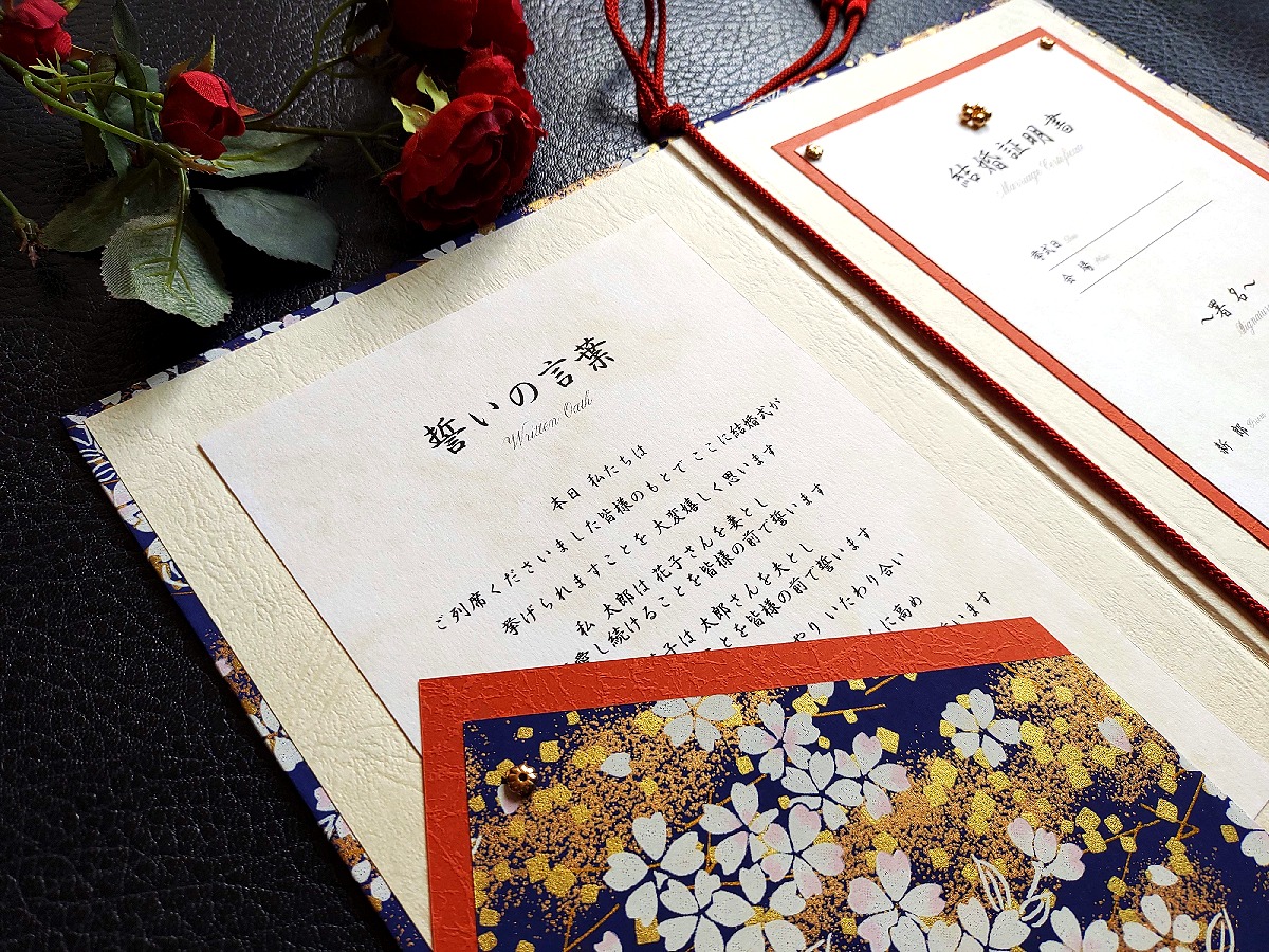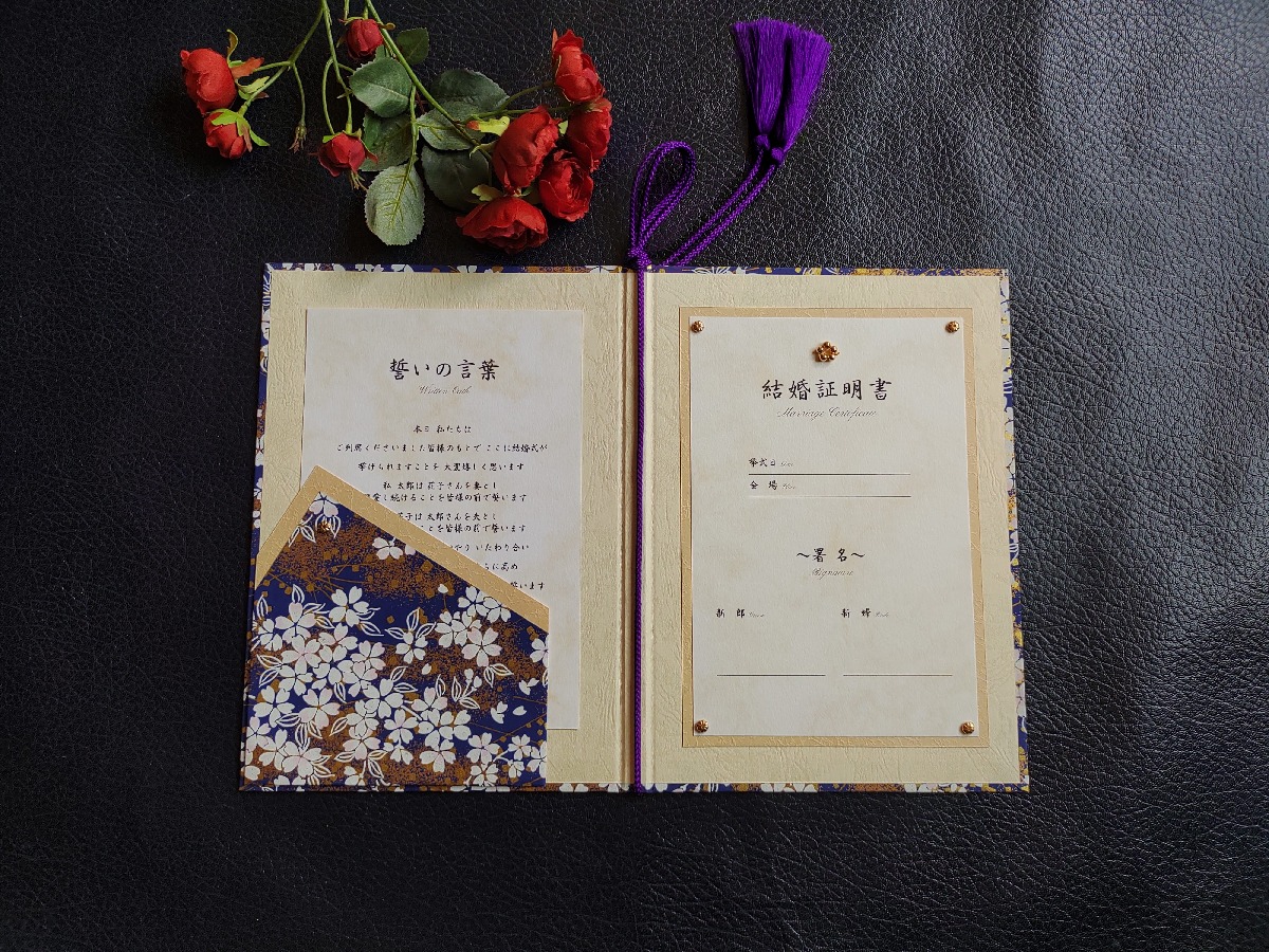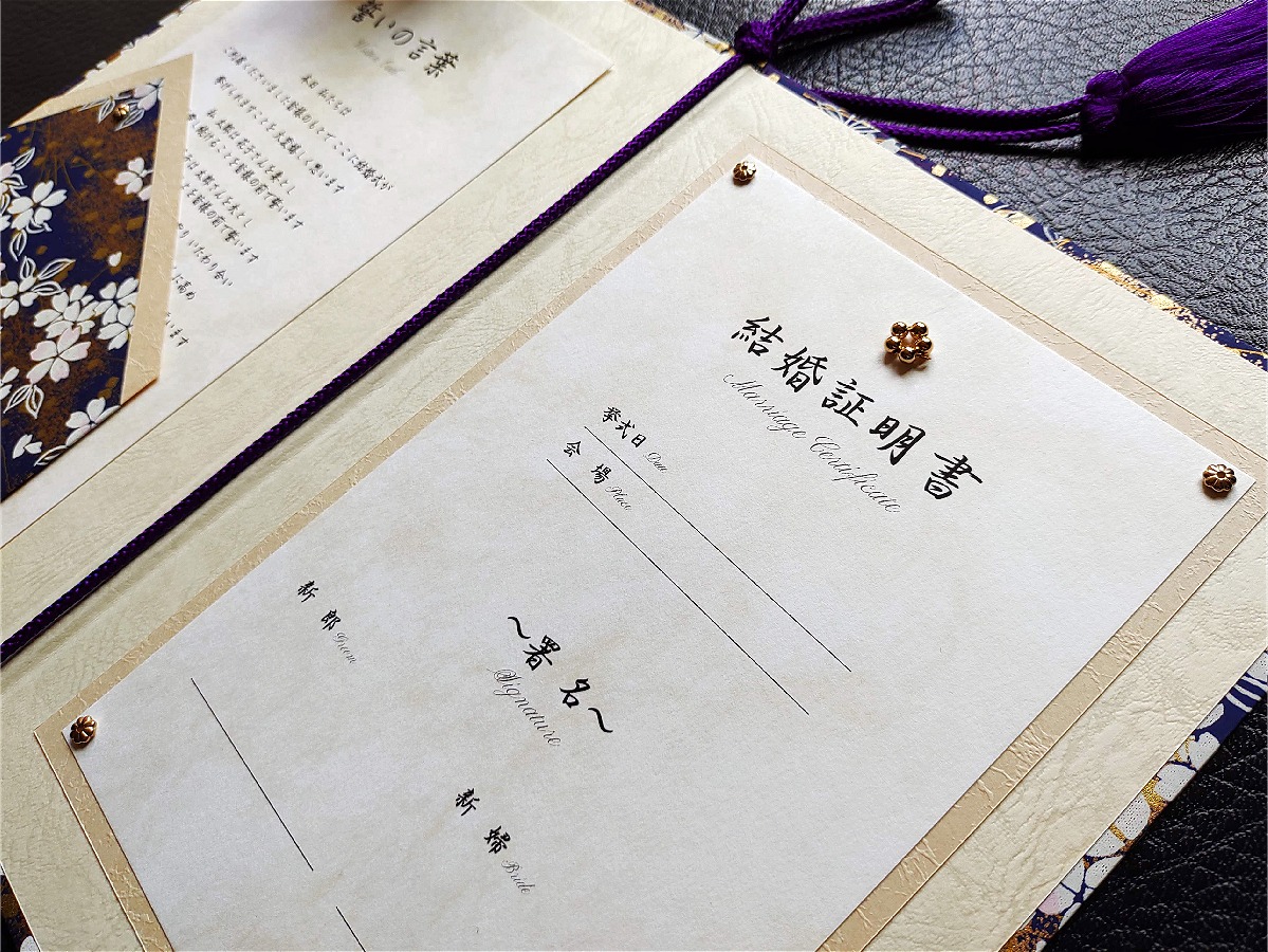 結婚証明書オーダーメイド制作例(青地白桜金砂子)