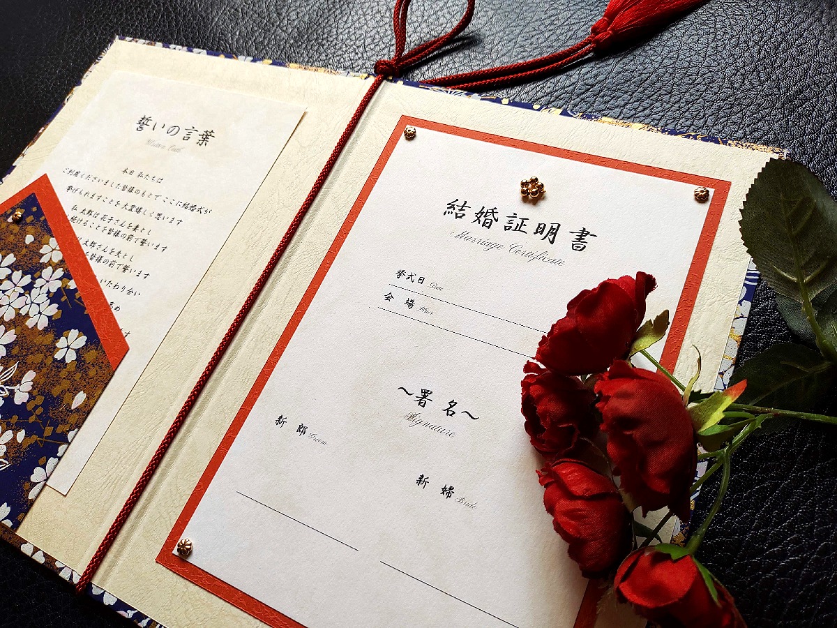・結婚証明書1枚(縦21cm横14cm)