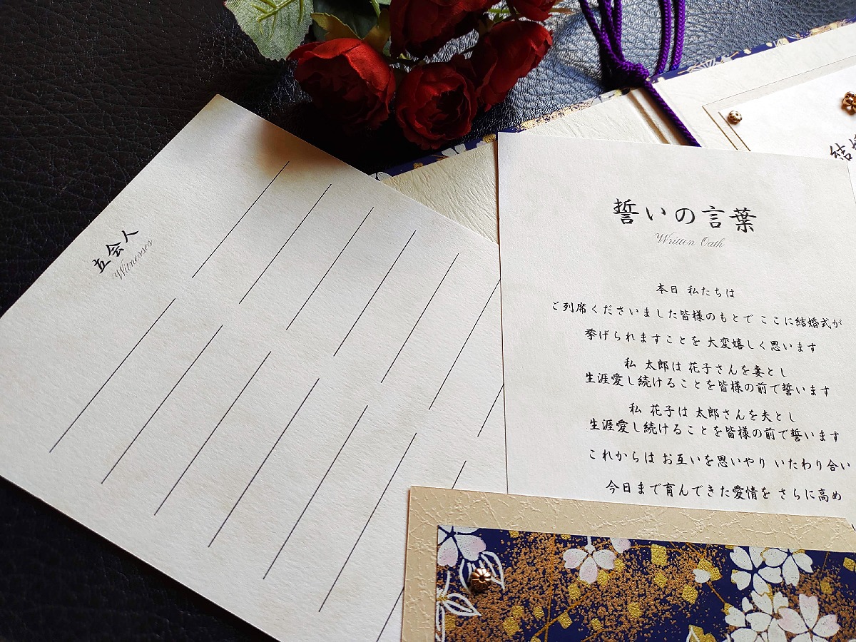 私 花子は 太郎さんを夫とし 生涯愛し続けることを皆様の前で誓います